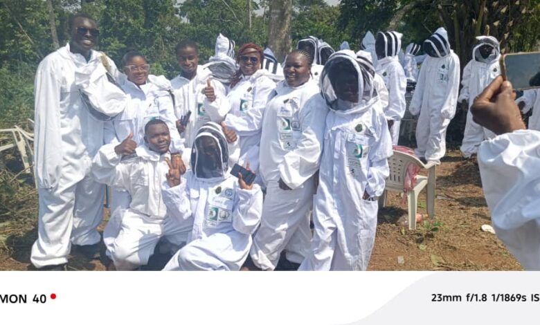 Dans le cadre de cette formation, les apprenants ont effectué un déplacement sur le site d’apiculture d’AFANOYOA situé dans l’arrondissement de Yaoundé 3 avec les enseignants pour s’imprégner des pratiques et techniques de cette activité.